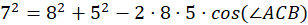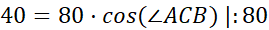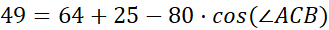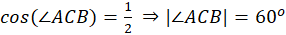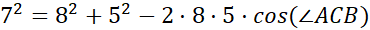Punkt przecięcia symetralnych w trójkącie wyznacza nam środek okręgu opisanego na tym trójkącie. Skorzystasz z twierdzenia cosinusów, aby obliczyć kąt ACB: