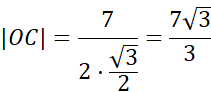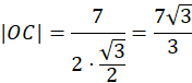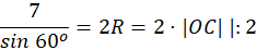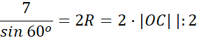 Punkt przecięcia symetralnych w trójkącie wyznacza nam środek okręgu opisanego na tym trójkącie. Oznacza to, że OC to promień okręgu opisanego na tym trójkącie. Skorzystasz z twierdzenia sinusów:
