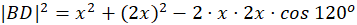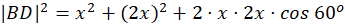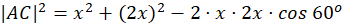 Niech x, 2x to boki równoległoboku (x > 0). Jeżeli masz dane dwa boki trójkąta oraz kąt między nimi, to z twierdzenia cosinusów możesz wyliczyć trzeci bok: