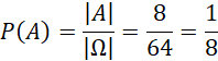 Rysunek przedstawia szkic kostki z treści zadania. Zauważ, że sześcianiki sprzyjające zdarzeniu 𝐴 to narożniki sześcianu, których jest łącznie osiem. Mamy więc: