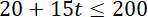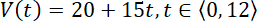Początkowo w wannie było 20 l wody, a z każdą minutą przybywało 15 l. Wzór funkcji, określający zależność liczby litrów wody w wannie od czasu, jaki upłynął po odkręceniu kranu do chwili ich zakręcenia to