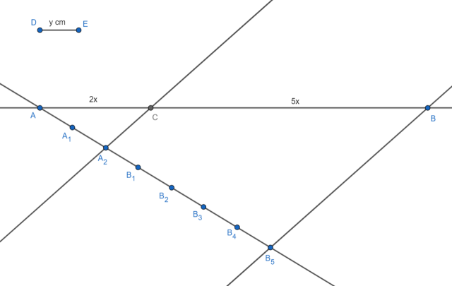 4. Z punku A odmierz dwie długości y i zaznacz punkt A2 a następnie z punktu A2 odmierz pięć długości y i zaznacz B5.