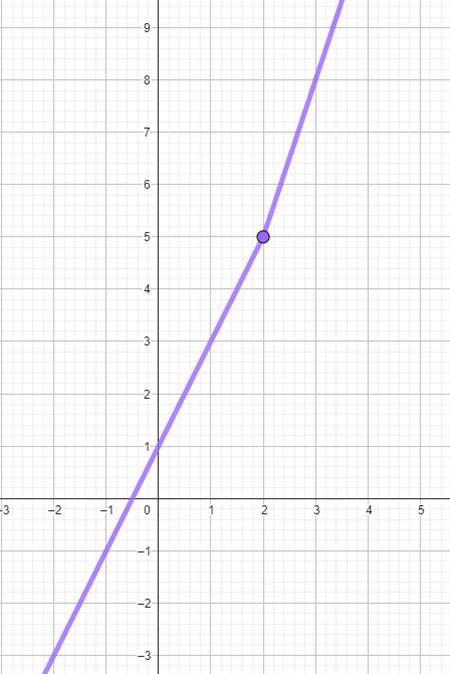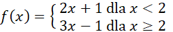 Narysuj podane fragmenty funkcji w odpowiadających im przedziałach. Oznacz miejsce złączenia się prostych kółkiem z wypełnieniem, aby wskazać, że ono również należy do wykresu.