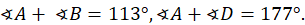 Skorzystaj z faktu, że suma naprzeciwległych kątów czworokąta wpisanego w okrąg jest równa 180°, a suma kątów w czworokącie – 360°.