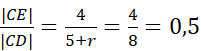 Znajdź trójkąty podobne i oblicz ich skalę podobieństwa. Na podstawie skali znajdź długość odcinka CB.