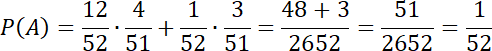 A – pierwsza wylosowana karta jest pikiem innymi niż as, a druga dowolnym asem lub pierwsza wylosowana karta jest asem pik, a druga dowolnym innym asem