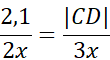 Znajdź trójkąty podobne i na podstawie proporcji oblicz długość odcinka CD.