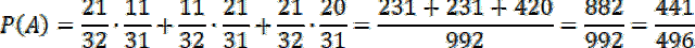 Wyznacz prawdopodobieństwo wylosowania co najmniej jednej dziewczyny, jeśli w klasie IV c jest 21 dziewcząt i 11 chłopców i wybieramy losowo kolejno dwie osoby z tej klasy.