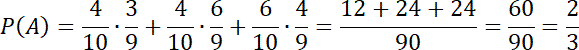 Wyznacz prawdopodobieństwo wylosowania co najmniej jednego losu wygrywającego, jeśli w pudełku znajdują się 4 losy wygrywające i 6 losów pustych i losujemy dwa losy.