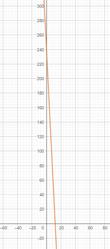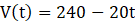 Po otwarciu kurka odpływowego, woda wypływała ze zbiornika przez cały czas z równą prędkością, wynoszącą 20 litrów na minutę. Na początku zbiornik zawierał 240 litrów wody. Musisz naszkicować wykres funkcji V.