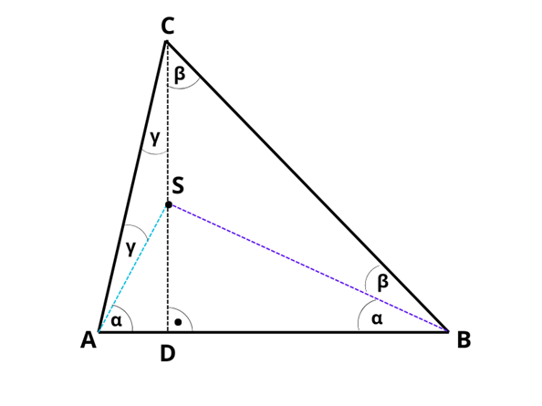 Trójkąty ASB, ASC, BSC są równoramienne.