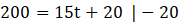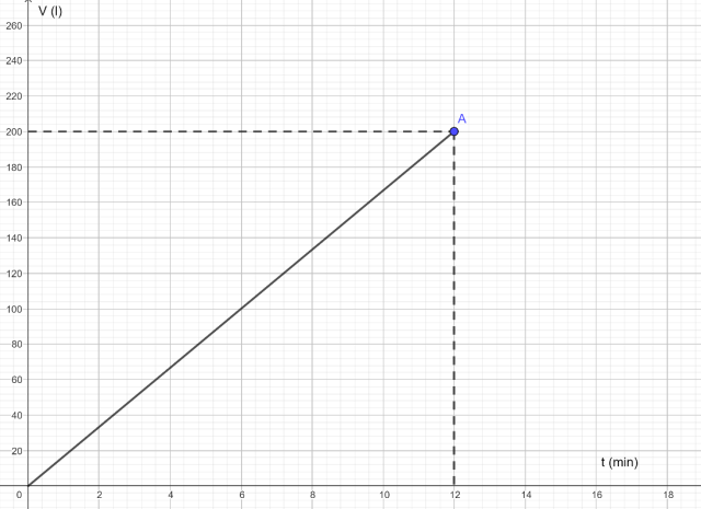 W wannie o pojemności 200 litrów było na początku 20 litrów wody. Po odkręceniu kurków do wanny napływa 15 litrów wody co minutę. Musisz napisać wzór funkcji określający zależność liczby litrów wody w wannie, jaki upłynął od odkręcenia kranów do momentu ich zakręcenia, kiedy wanna była pełna. Następnie naszkicować wykres tej funkcji.