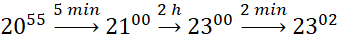 Najpierw odmierzamy, ile czasu zostało do najbliższej pełnej godziny, następnie do pełnej godziny zakończenia, na koniec dodajemy minuty do dokładnego czasu zakończenia.