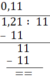 W tym zadaniu oblicz iloraz 0,121 : 1,1.