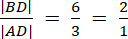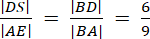 Środkowa dzielą się w stosunku 2:1. Niech E będzie spodkiem wysokości środkowej BS. To znaczy, że