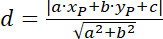 Skorzystaj ze wzoru na odległość punktu od prostej w układzie współrzędnych: