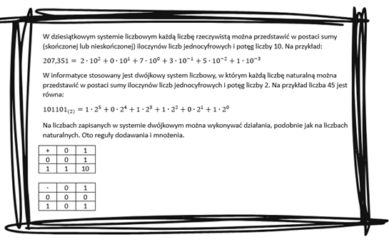 Zapisując podane liczby, należy je rozłożyć na czynniki zgodnie z algorytmem systemu dwójkowego zaprezentowanym w ramce.