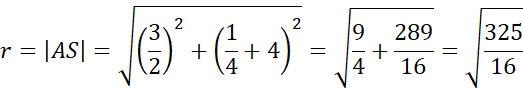 Na podstawie poprzedniego podpunktu znasz wszystkie wierzchołki trapezu. Następnie zauważ, że środek okręgu leży na prostej będącej jego osią symetrii, a przekątne dzielą się na pół, są sobie równe i są równe promieniowi okręgu. Ze wzoru na długość odcinka wyznacz wartość pierwszej współrzędnej środka trapezu, a następnie drugiej i oblicz jego promień. Na koniec zapisz szukane równanie okręgu.