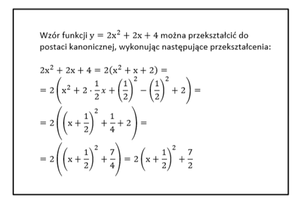 Przekształcamy wzór funkcji według schematu przedstawionego w zadaniu.