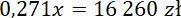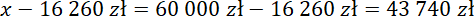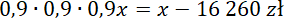 Oznacz x jako początkową cenę samochodu. W ciągu roku cenę samochodu obniżono trzykrotnie o 10%. Ile kosztuje obecnie ten samochód, jeżeli jego cena jest o 16 260 zł niższa od wyjściowej?