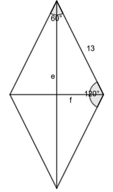 Wyznacz długości przekątnych oraz wysokość tego rombu, jeśli kąt ostry rombu o boku długości 13 ma miarę .