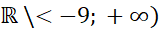 Ponieważ od zbioru liczb rzeczywistych odjęliśmy liczby, zaczynając od - 9, liczby sięgające w głąb liczb dodatnich, zostają liczby ujemnie do liczby - 9 już bez niej w przedziale.