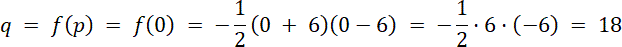 W wierzchołku W(p, q) współrzędna p leży dokładnie pomiędzy miejscami zerowymi, więc: