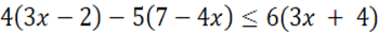Należy przemnożyć różnice i sumę algebraiczną przez liczby stojącą przed nawiasami, przenieść niewiadome na lewą stronę nierówności a liczby na prawą stronę nierówności, zredukować wyrazy podobne. Następnie podzielić nierówność przez liczbę przy x i na koniec wyznaczyć przedział, który spełnia naszą nierówność.