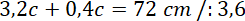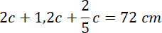 Obwód trapezu równoramiennego jest równy 72 cm. Oznacz długości ramienia jako c. Dłuższa podstawa jest o 20% większa niż ramię, ma więc długość 1,2c, a krótsza podstawa stanowi