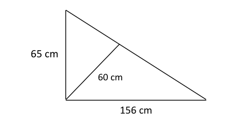 Oblicz pole pewnego trójkąta prostokątnego, jeśli jego wysokości mają miary: 60 cm, 65 cm i 156 cm.