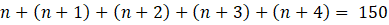 W tym zadaniu musisz podać wartość największej z danych liczby naturalnej, wiedząc, że suma pięciu kolejnych liczb naturalnych jest równa 150.