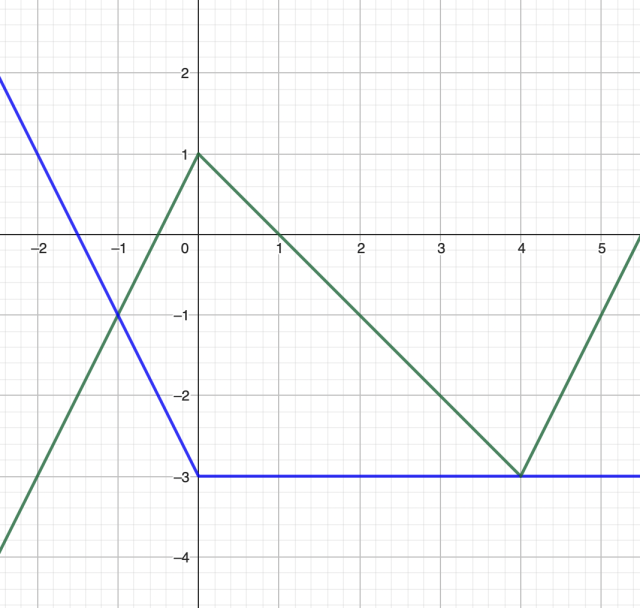 Teraz przesuń funkcję f o 3 jednostki w dół i funkcję g o 3 jednostki w górę i sprawdź, dla jakich argumentów wykresy tych funkcji przecinają się: