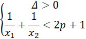 Rozpisujemy założenia, następnie przemnażamy przez mianowniki i sprowadzamy równoważnie do równania kwadratowego, z parametrem. Chcemy, aby miało dwa rozwiązania, zatem delta musi być większa od 0 oraz suma odwrotności kwadratów była mniejsza od 2p+1. Pierwszy warunek rozwiązujemy poprzez wzór na deltę. Rozkładamy do postaci iloczynowej, rysujemy wykres i zaznaczamy przedziały, dla których wykres znajduje się poniżej osi ox. Drugi warunek zapisujemy przy pomocy wzór Vieta i postępujemy analogicznie, pamiętając, że badając znak ilorazu, możemy równoważnie badać znak iloczynu mianownika i licznika. Końcową odpowiedź stanowi część wspólna obydwu wyników.