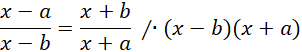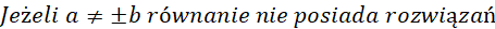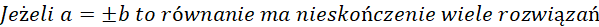 Zapisujemy założenia, następnie przemnażamy przez mianowniki. Otrzymujemy wyrażenie niezależne od x, zatem równanie będzie miało nieskończenie wiele rozwiązań, lub będzie sprzeczne. Nieskończenie wiele będzie miało, kiedy wyrażenie zależne od parametrów będzie równe prawej stronie równości, czyli równe 0, a żadnego w każdym innym przypadku.
