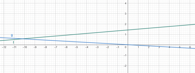 Ustal wzajemne wykresów funkcji i i odczytaj dla jakich argumentów funkcja przyjmuje wartości nie mniejsze niż funkcja .