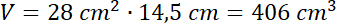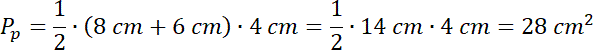 Podstawą tego graniastosłupa jest trapez. Oblicz jego pole ze wzoru . Następnie oblicz objętość graniastosłupa ze wzoru .
