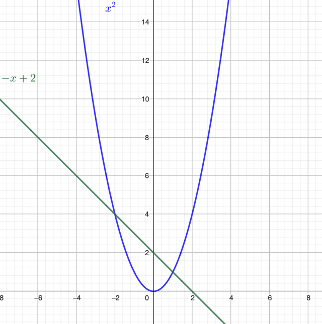 Zauważ, że te wykres, aby rozwiązać tę nierówność musisz znaleźć takie argumenty, dla których wartość funkcji jest większa lub równa wartości funkcji . Taki warunek zachodzi dla zbioru: