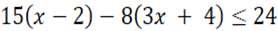 Należy wykonać niezbędne działania: przemnożyć nierówność obustronnie przez 12, by pozbyć się ułamków. Następnie pomnożyć sumę i różnicę algebraiczną przez liczbę, przenieść niewiadome na lewą stronę nierówności a liczby na prawą stronę nierówności. Kolejnym krokiem jest podzielenie nierówność przez liczbę przy x, odwrócenie znaku nierówności, ponieważ dzielimy przez liczbę ujemną. Na koniec wyznaczyć przedział, który spełnia naszą nierówność.