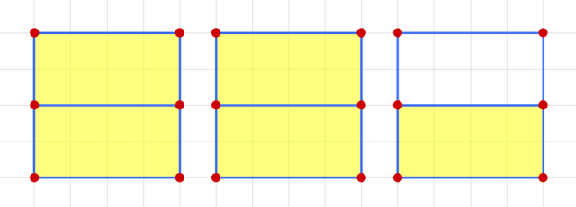 Musisz narysować 3 identyczne kwadraty, a następnie pokolorować łącznie