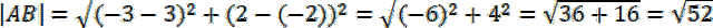 Skorzystaj ze wzoru na długość odcinka w układzie współrzędnych: