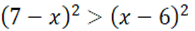 Podnosimy różnice algebraiczne do kwadratu, korzystając ze wzoru skróconego mnożenia na kwadrat różnicy. Następnie przenosimy niewiadome na lewą stronę nierówności a liczby na prawą stronę nierówności oraz dzielimy nierówność przez liczbę przy x. Odwracamy znak nierówności, ponieważ dzielimy przez liczbę ujemną. Na koniec wyznaczamy przedział, który spełnia naszą nierówność i zaznaczamy go na osi liczbowej.
