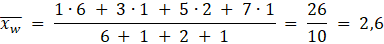 Oblicz średnią ważoną, wg informacji podanych w tabeli.