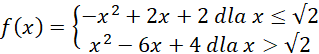 Określamy czy ramiona paraboli będącej wykresem podanej funkcji są skierowane w dół czy w górę korzystając z wartości współczynnika kierunkowego. Określi to początkowy wzrost/spadek wartości funkcji do wierzchołka, a następnie spadek/wzrost wartości od wierzchołka do nieskończoności. Musimy również wziąć pod uwagę odpowiednie funkcje w określonych przedziałach x.