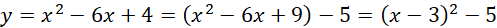 Jest to parabola skierowana w górę z wierzchołkiem znajdującym się w punkcie (3, -5). Zatem funkcja