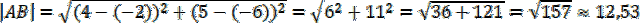 Skorzystaj ze wzoru na długość odcinka w układzie współrzędnych: