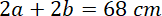 Obwód równoległoboku jest równy 68 cm. Jedna z wysokości równoległoboku jest o 30% mniejsza od drugiej, a kąt ostry zawarty między bokami równoległoboku ma miarę