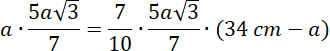 Oznacz krótszy bok jako a, dłuższy jako b. Dłuższa wysokość opada na krótszy bok, oznacz ją jako x. Krótsza wysokość opadająca na dłuższy bok wynosi 0,7x. Wyznacz wzory na pole: