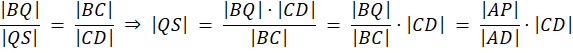 Zastosuje twierdzenie Talesa, które mówi, że jeśli przez parę prostych przecinających się poprowadzono proste równoległe, to stosunki odpowiednich odcinków są sobie równe. Przekształcając równania wyznacz, że długość odcinków QS I PS są sobie równe..