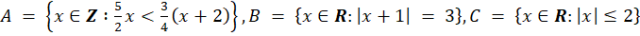 Wyznacz każdy ze zbiorów A, B, C. W przypadku zbioru A, rozwiąż podaną nierówność. W zbiorze A znajdują się więc liczby całkowite mniejsze od