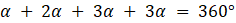Stosunek długości łuków odpowiada stosunkowi miar kątów wewnętrznych. Suma kątów wewnętrznych wynosi 360°